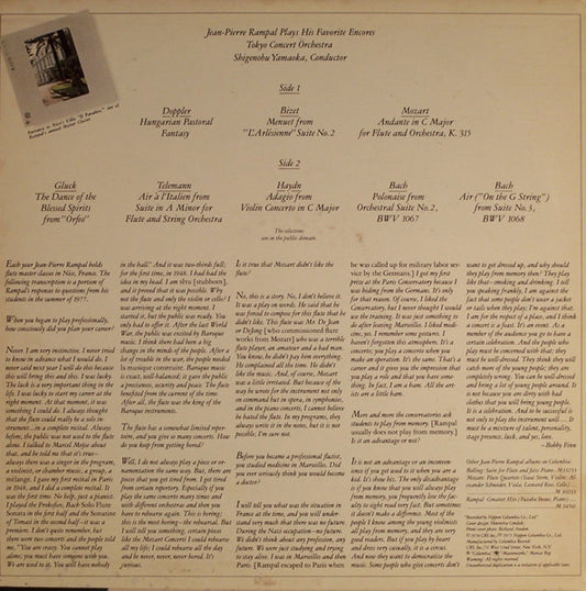 Jean-Pierre Rampal, Tokyo Concert Orchestra, Shigenobu Yamaoka - Jean-Pierre Rampal Plays His Favorite Encores (LP, Album)