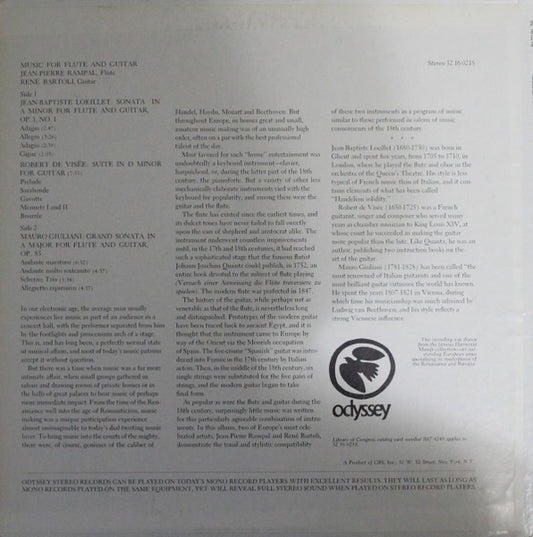Jean-Pierre Rampal & René Bartoli - Music For Flute And Guitar (An 18th Century Serenade) (LP, RE)