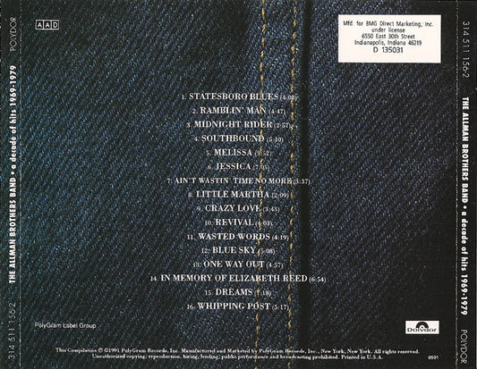 The Allman Brothers Band - A Decade Of Hits 1969-1979 (CD, Comp, Club, RE)
