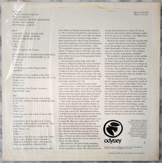 Vivaldi* - Max Goberman, The New York Sinfonietta* - Three Concertos For Viola D'Amore / Two Concertos For Mandolin (LP)