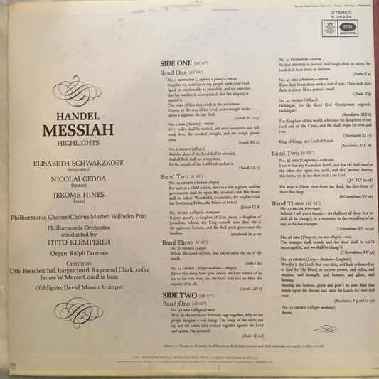 Handel*, Elisabeth Schwarzkopf • Nicolai Gedda • Jerome Hines, The Philharmonia Chorus* And Orchestra* Conducted By Otto Klemperer - Messiah Highlights (LP, Ste)