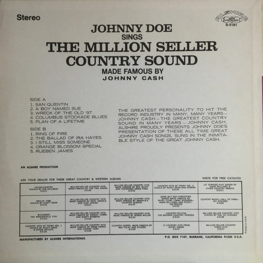Johnny Doe - Sings The Million Seller Country Sound Made Famous By Johnny Cash (LP)