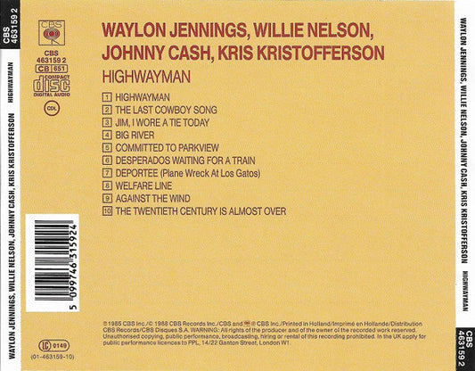 Waylon Jennings, Willie Nelson, Johnny Cash, Kris Kristofferson - Highwayman (CD, Album, RE)