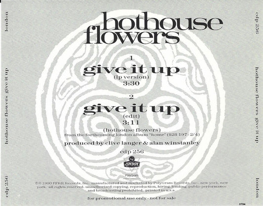 Hothouse Flowers - Give It Up (CD, Single, Promo)
