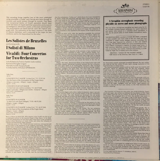 Vivaldi* / Les Solistes De Bruxelles · I Solisti Di Milano, Lola Bobesco* & Franco Fantini (Solo Violins) · Conducted By Angelo Ephrikian - Vivaldi: Four Concertos For Two Orchestras (LP, Album)
