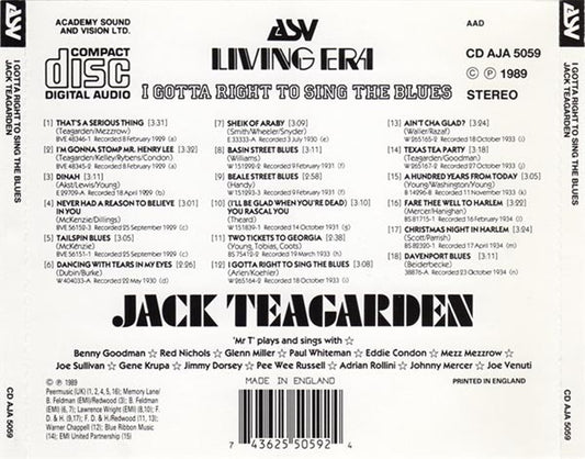 Jack Teagarden - I Gotta Right To Sing The Blues (CD, Album, Comp)