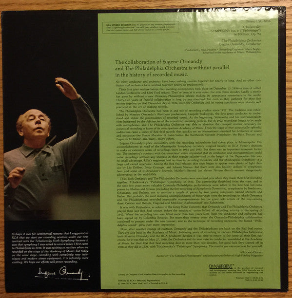 Pyotr Ilyich Tchaikovsky - Orquesta de Filadelfia, Eugene Ormandy - Sinfonía n.º 6, Pathétique (LP, Álbum, RP)