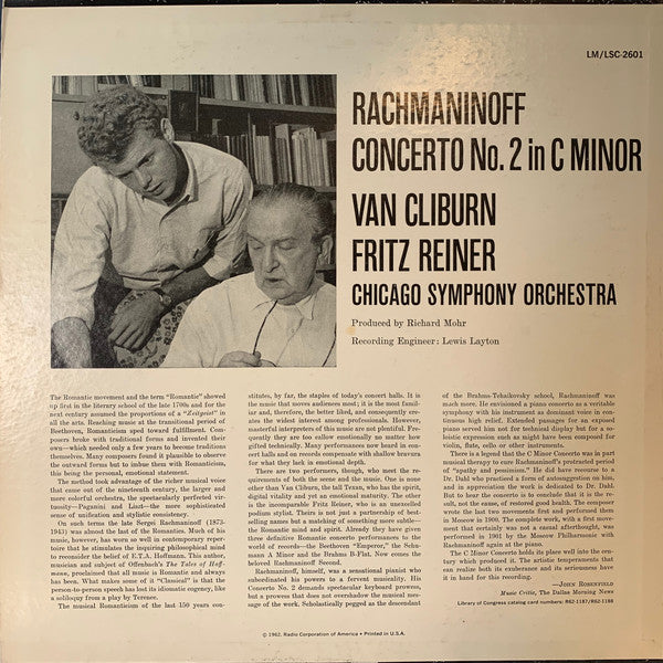 Sergei Vasilyevich Rachmaninoff / Van Cliburn, Fritz Reiner, Orquesta Sinfónica de Chicago - Concierto n.º 2 (LP, Álbum, Ind)