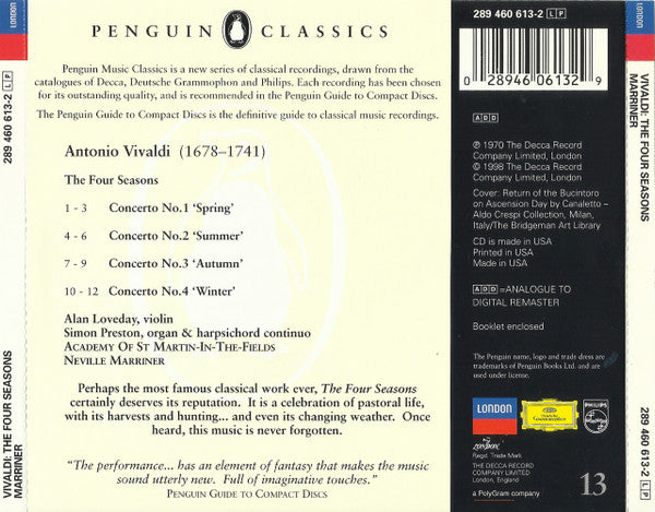 Vivaldi*, Neville Marriner* - The Four Seasons (CD, Album, RE)