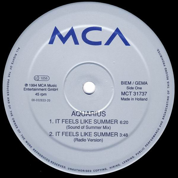 Aquarius - It Feels Like Summer (12")