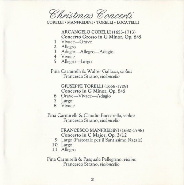 Arcangelo Corelli · Francesco Manfredini · Giuseppe Torelli · Pietro Antonio Locatelli – I Musici - Christmas Concerti (CD, Album, RE)