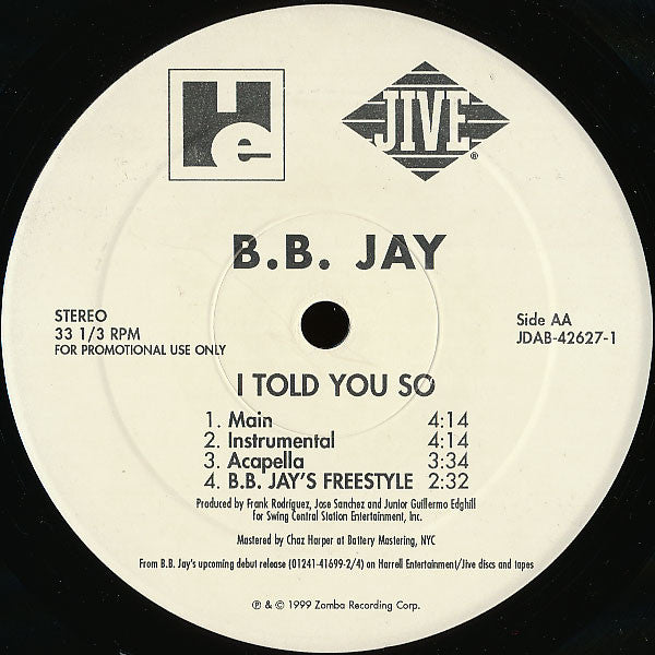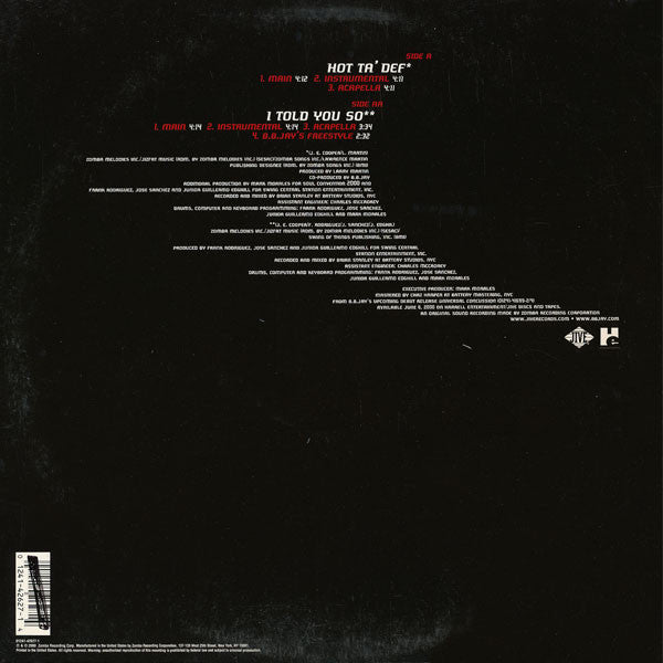 B.B. Jay - Hot Ta' Def / I Told You So (12", Promo)