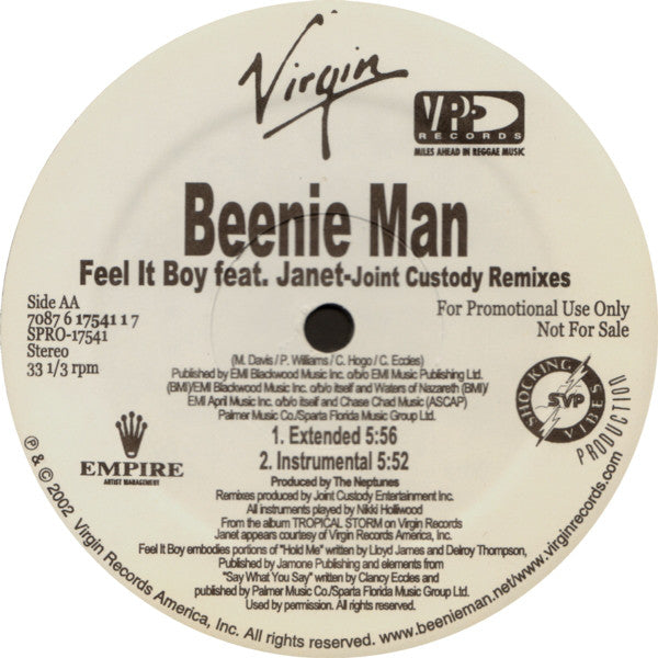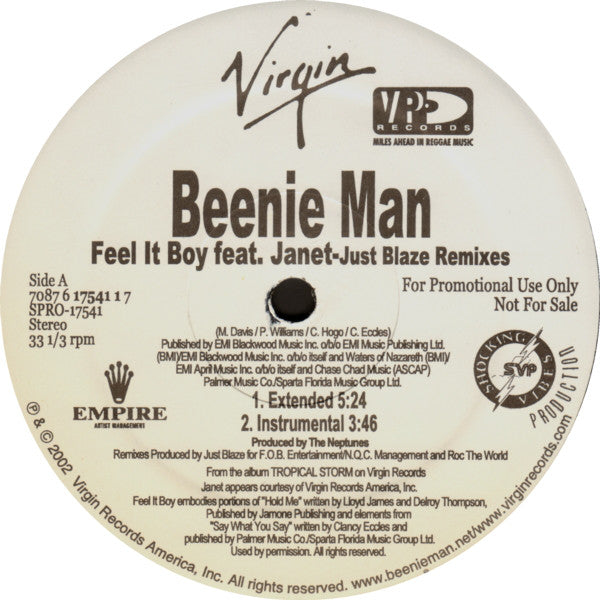 Beenie Man featuring Janet Jackson - Feel It Boy (12", Promo)