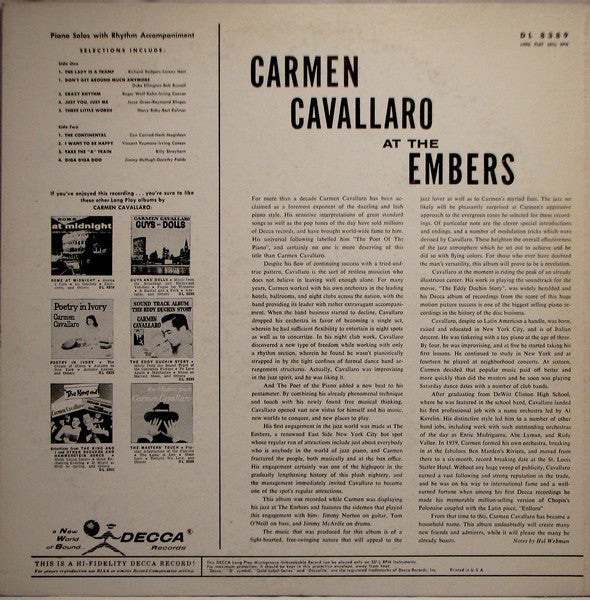 Carmen Cavallaro - At The Embers (LP, Mono)