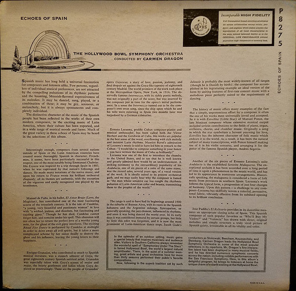 Carmen Dragon Conducting The The Hollywood Bowl Symphony Orchestra - Echoes Of Spain (LP, Album)