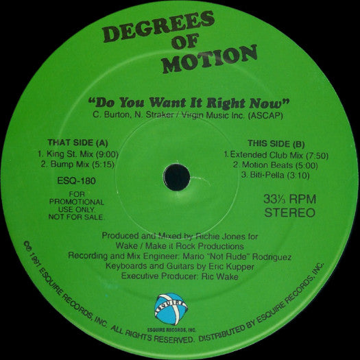 Degrees Of Motion - Do You Want It Right Now (12", Promo)