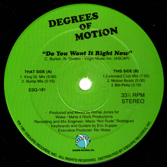 Degrees Of Motion Featuring Biti Strauchn - Do You Want It Right Now (12")