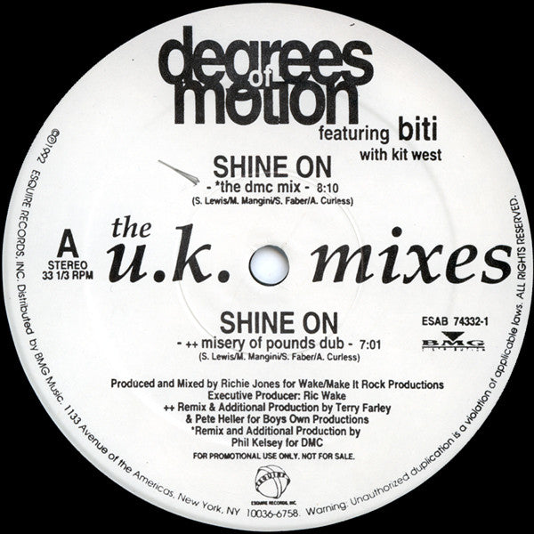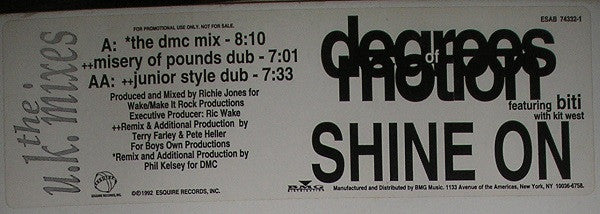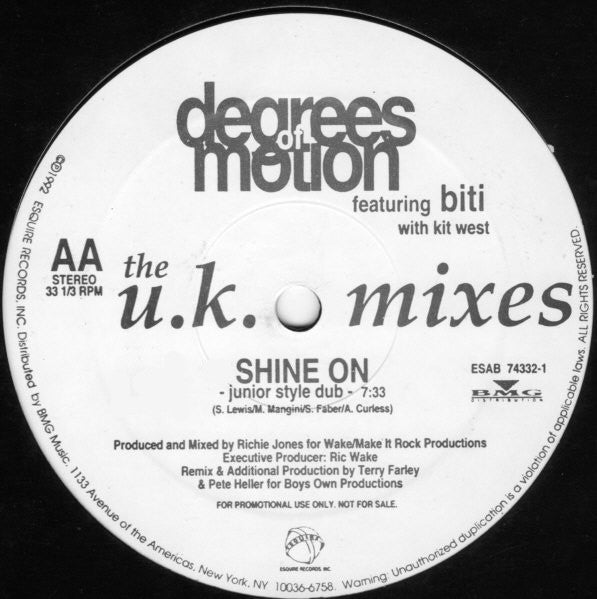 Degrees Of Motion Featuring Biti Strauchn With Kit West - Shine On (The U.K. Mixes) (12", Promo, Whi)