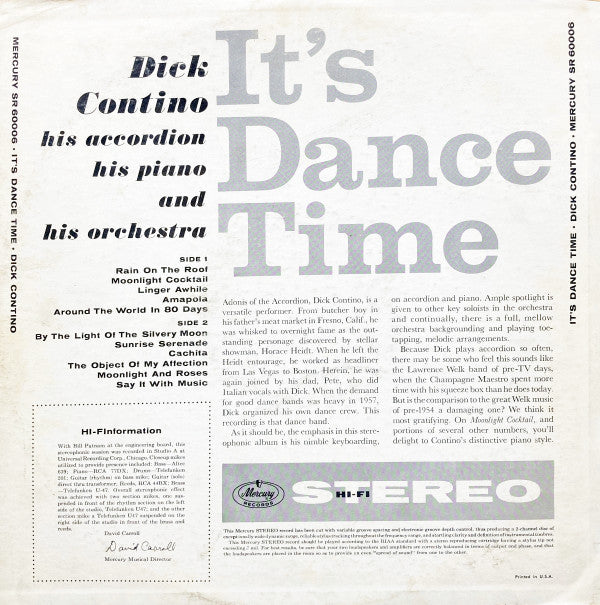 Dick Contino And His Orchestra - It's Dance Time (LP, Album)