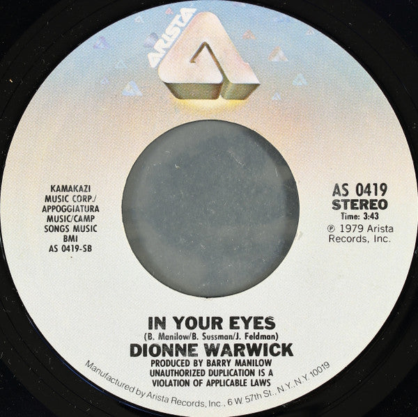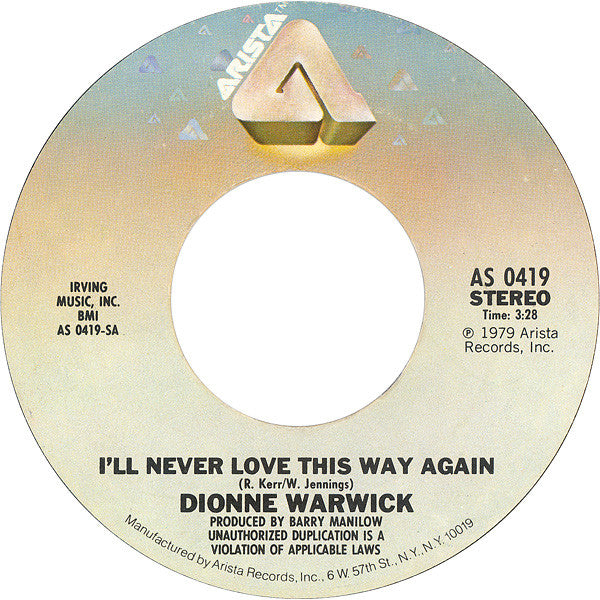 Dionne Warwick - I'll Never Love This Way Again (7", Single, Styrene, Pit)