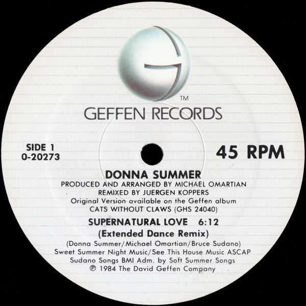 Donna Summer - Supernatural Love B/W Face The Music (12", Maxi)