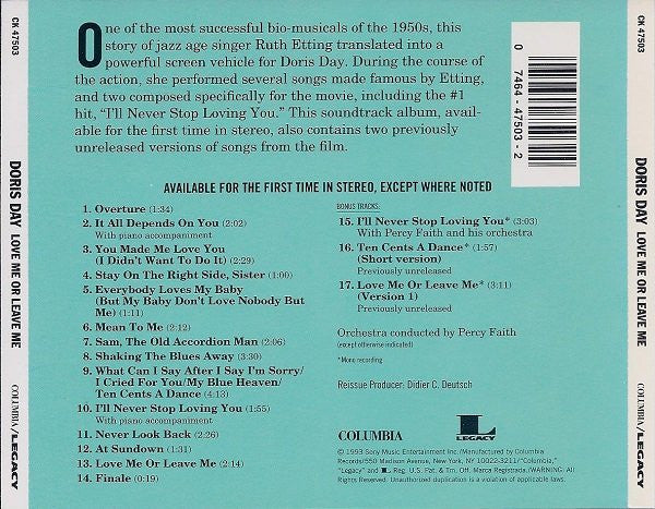 Doris Day - Love Me Or Leave Me (CD, Album, RE)