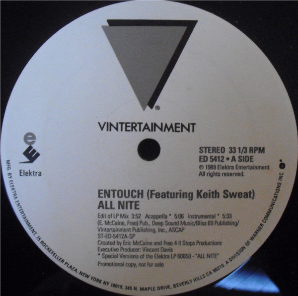 Entouch Featuring Keith Sweat - All Nite (12", Promo)