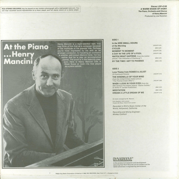 Henry Mancini And His Orchestra And Chorus - A Warm Shade Of Ivory (LP, Album, RP)