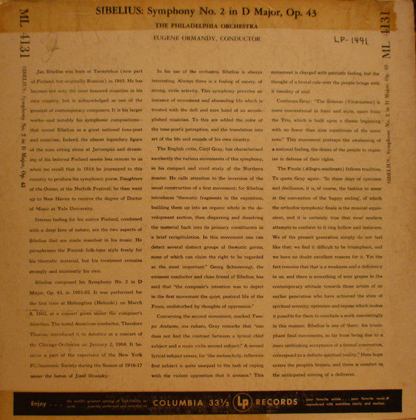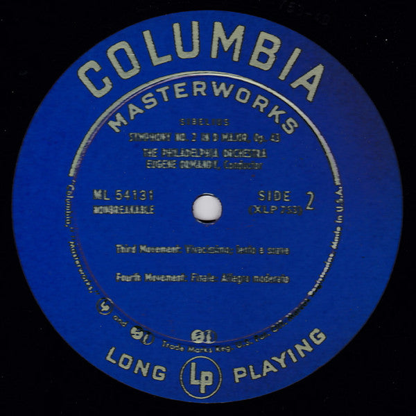 Jean Sibelius - The Philadelphia Orchestra, Eugene Ormandy - Symphony No. 2 In D Major, Op. 43 (LP, Mono)
