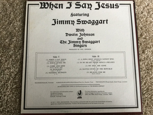 Jimmy Swaggart With Dwain Johnson And The Jimmy Swaggart Singers - When I Say Jesus (LP)