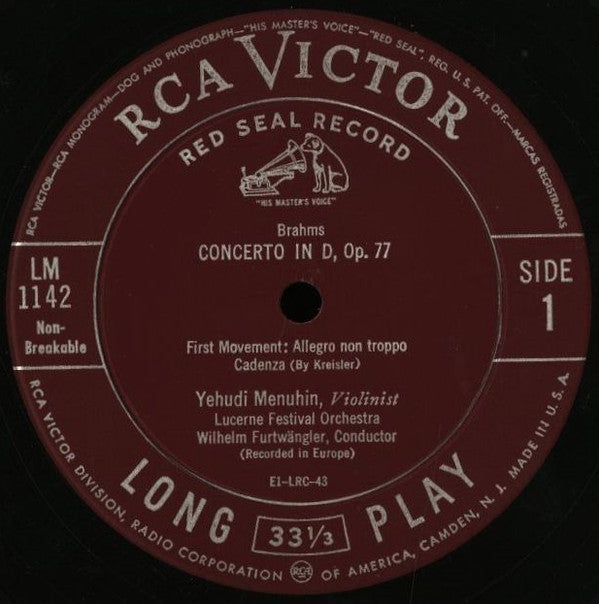 Johannes Brahms, Yehudi Menuhin, Lucerne Festival Orchestra, Wilhelm Furtwängler - Concerto In D, Op. 77 For Violin And Orchestra (LP)