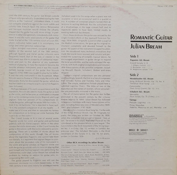 Julian Bream - Romantic Guitar (LP, Album)