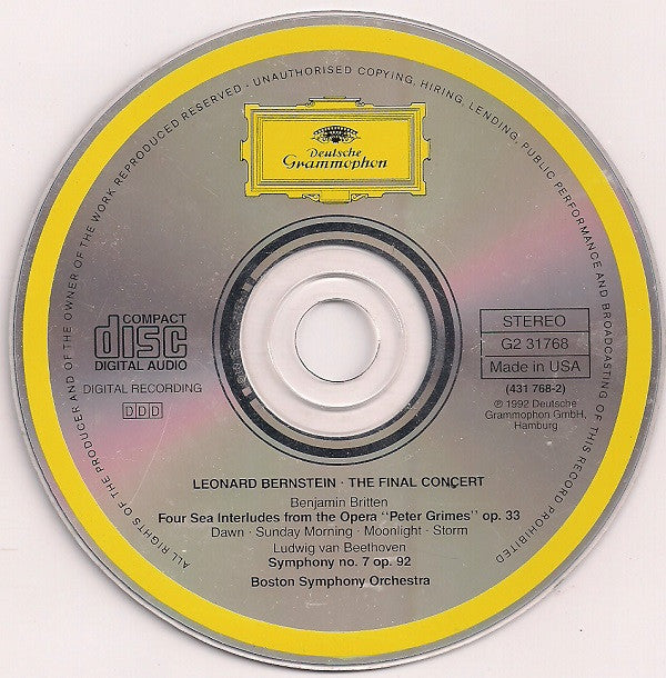 Leonard Bernstein ∙ Ludwig van Beethoven ∙ Benjamin Britten, Boston Symphony Orchestra - The Final Concert (CD, Album, Club)