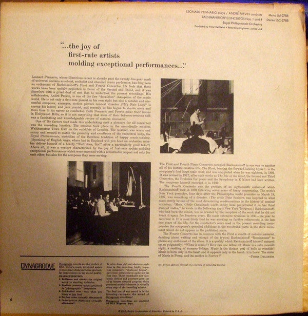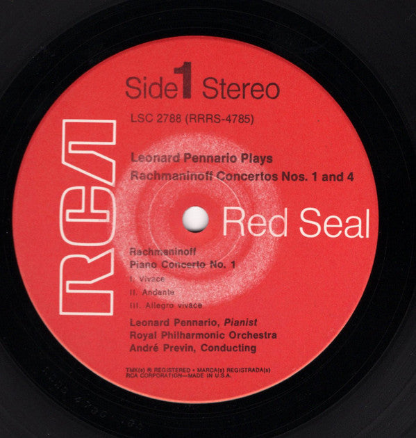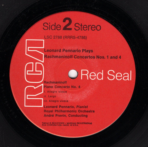Leonard Pennario - André Previn, Royal Philharmonic Orchestra - Rachmaninoff Concertos Nos. 1 And 4 (LP, Album, RE)