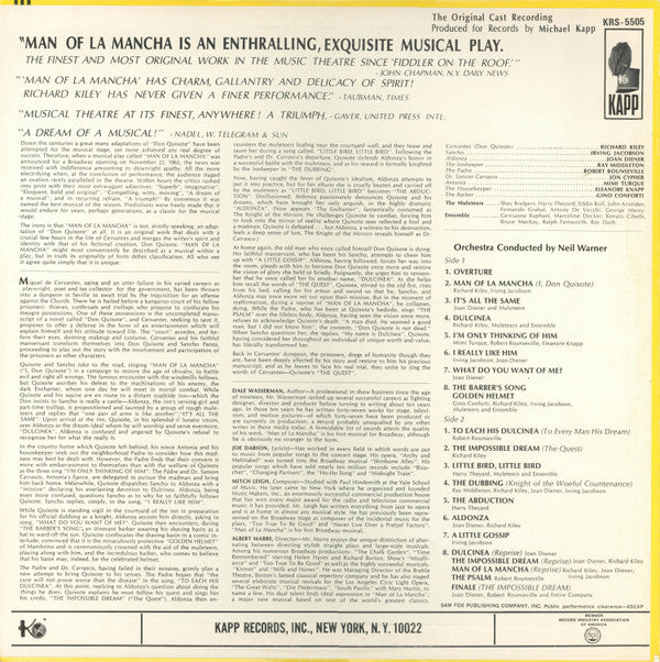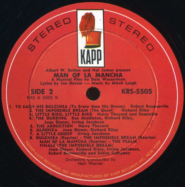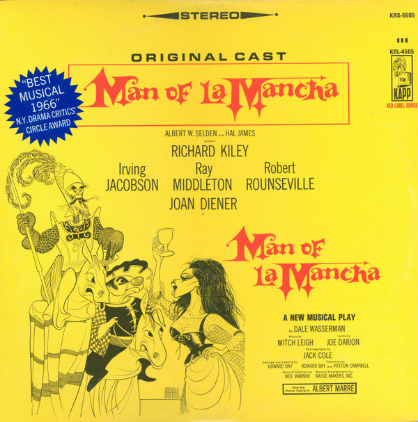 "Man Of La Mancha" Original Broadway Cast, Richard Kiley, Joan Diener, Irving Jacobson, Robert Rounseville, Ray Middleton - Man Of La Mancha (LP, Album)