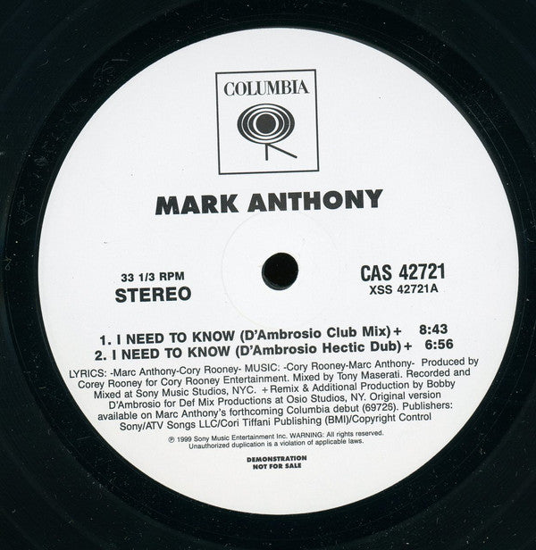 A1. I Need To Know (D'Ambrosio Club Mix) 8:43