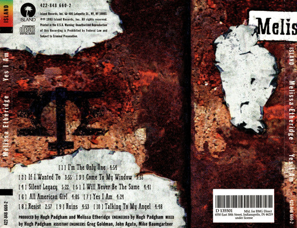 Melissa Etheridge - Yes I Am (CD, Album, Club, BMG)