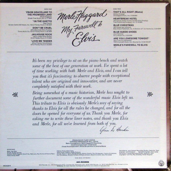 Merle Haggard - My Farewell To Elvis (LP, Album, Pin)