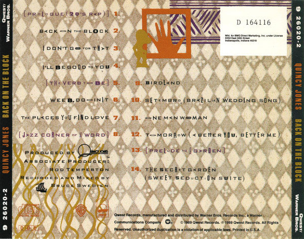 Quincy Jones - Back On The Block (CD, Album, Club, BMG)