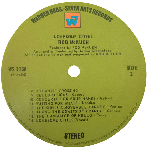 Rod McKuen - Lonesome Cities (LP, Album, Ter)