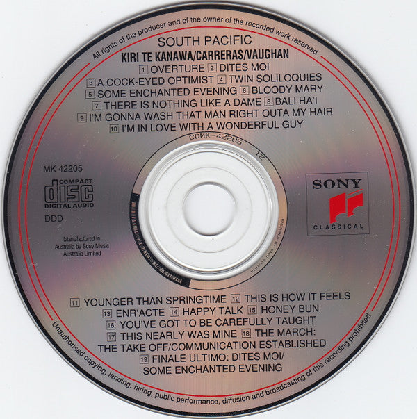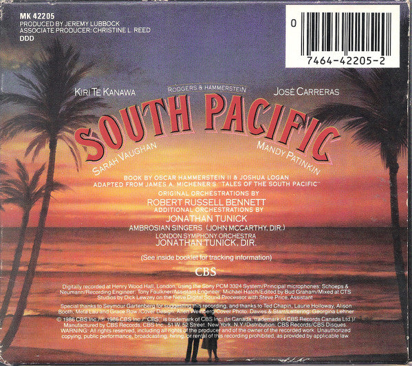 Rodgers & Hammerstein - Kiri Te Kanawa, José Carreras, Sarah Vaughan, Mandy Patinkin, The Ambrosian Singers, London Symphony Orchestra, Jonathan Tunick - South Pacific (CD, Album)