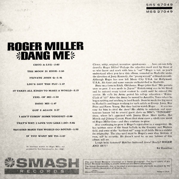 Roger Miller - Roger And Out (LP, Album, Mono)