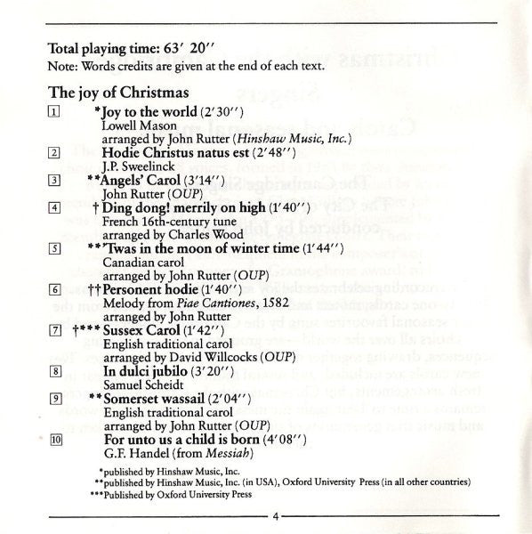 The Cambridge Singers, City Of London Sinfonia Conducted By John Rutter - Christmas With The Cambridge Singers (CD, Album)