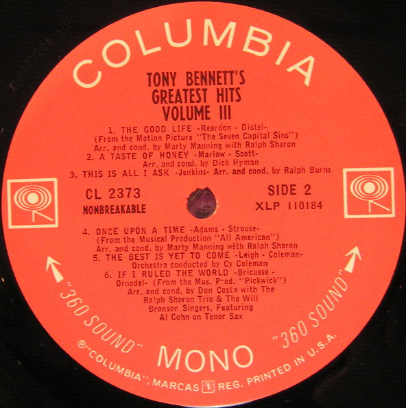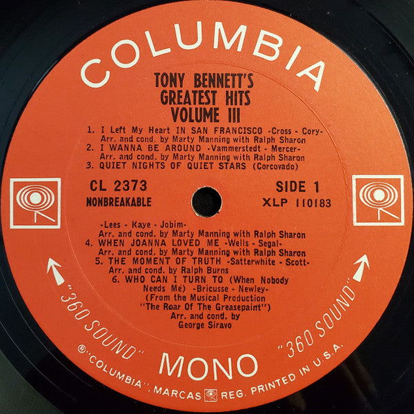 Tony Bennett - Tony's Greatest Hits, Volume III (LP, Comp, Mono, Ter)