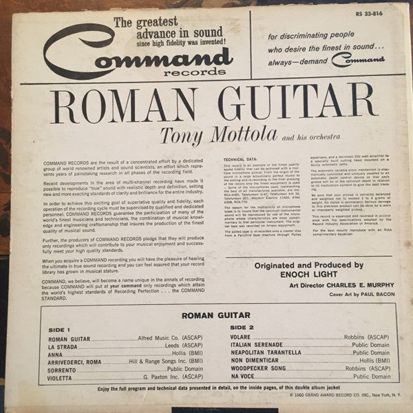 Tony Mottola And His Orchestra - Roman Guitar (LP, Album, Mono)