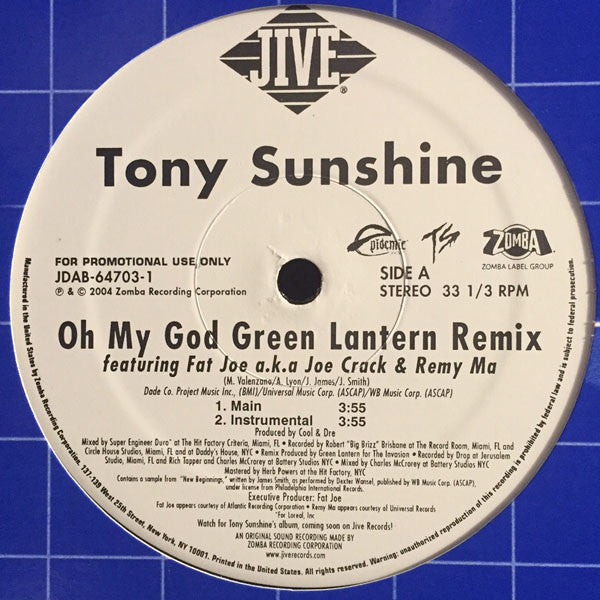 Tony Sunshine - Oh My God (Green Lantern Remix) (12", Promo)