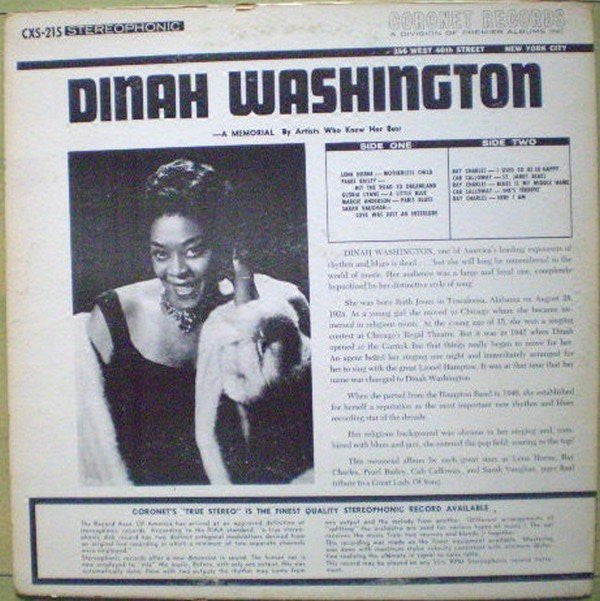 Various - Dinah Washington: A Memorial Tribute (LP, Comp)