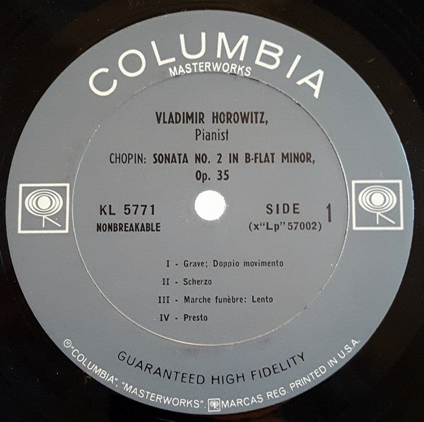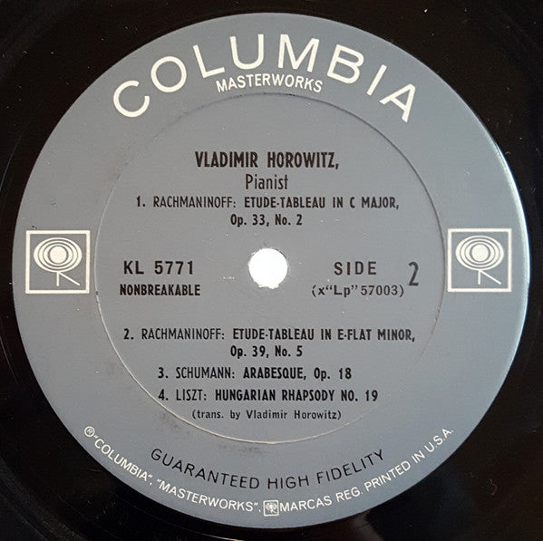 Vladimir Horowitz / Frédéric Chopin / Robert Schumann / Sergei Vasilyevich Rachmaninoff / Franz Liszt - Columbia Records Presents Vladimir Horowitz • Works By Chopin, Rachmaninoff, Schumann And Liszt (LP, Mono, Pit)