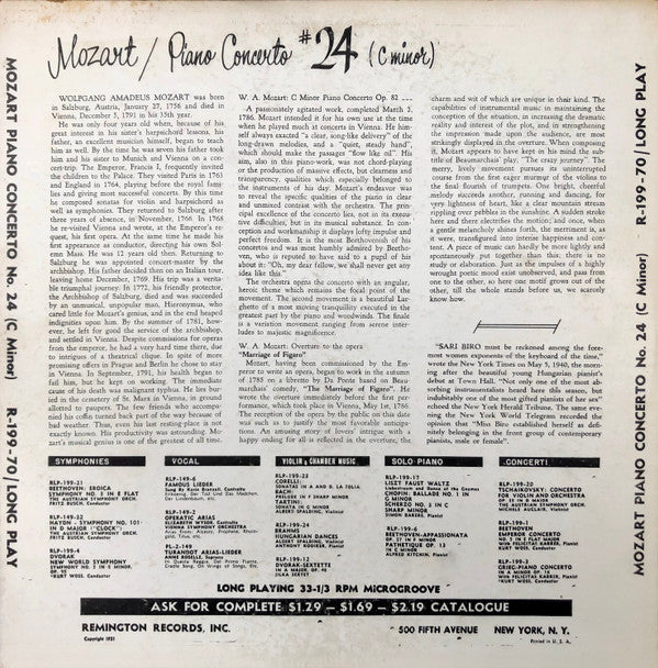 Wolfgang Amadeus Mozart, Sári Bíró, Austrian Symphony Orchestra , Conductor Wilhelm Loibner, Robert Heger - Piano Concerto #24 In C Minor (K491) And the Overture To "The Marriage Of Figaro" (LP, Mono)